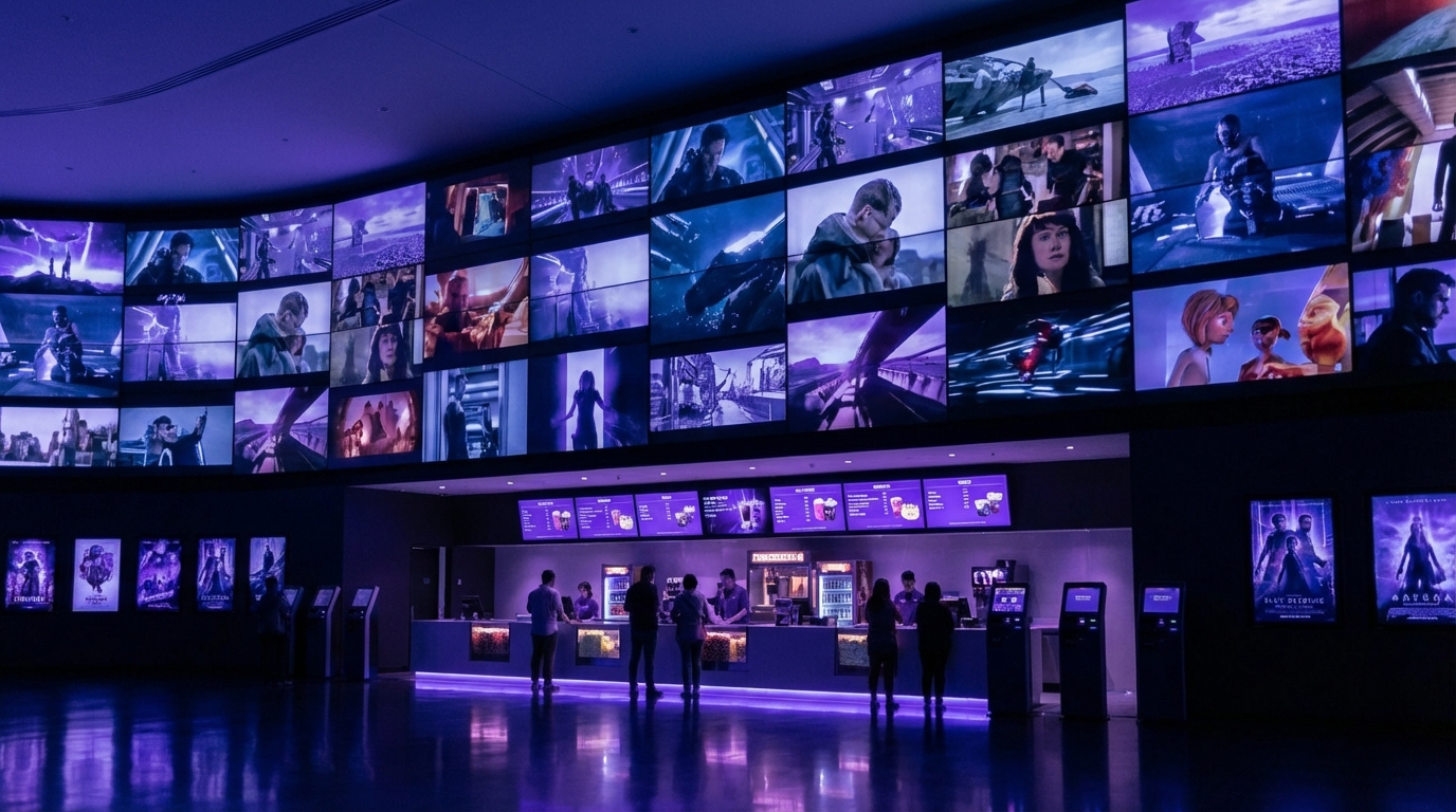 Film afişaları, seans cədvəlləri və promo videolar — avtomatik idarə.